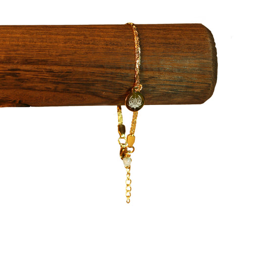 Bracelet - Golden flat chain - Lotus Flower Charm