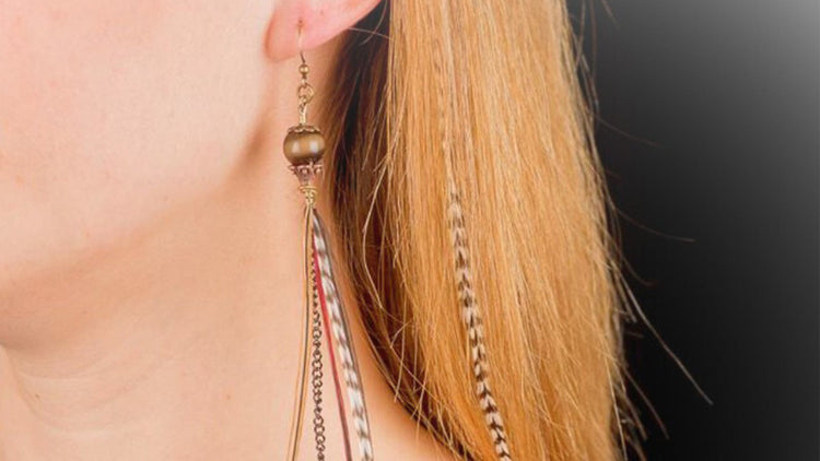 Choisissez parmi une multitude de choix de couleurs- Plumes 100% naturelles - Couleur durable - Extension de cheveux en plumes de coq de qualité supérieure - Plumes et boucles d'oreilles en acier inoxydable.